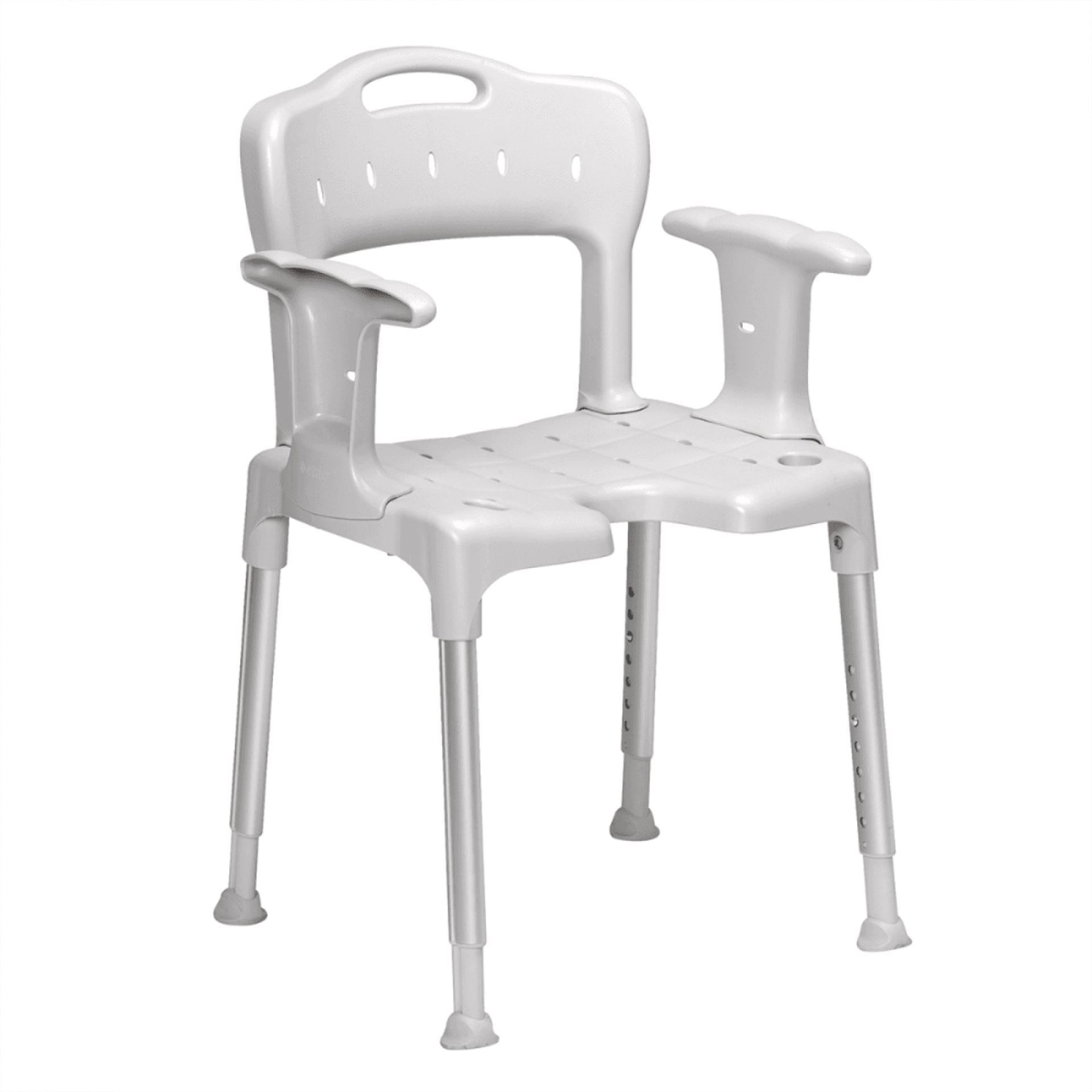 כסא רחצה איכותי ומודולרי עם ידיות ומשענת לבטיחות מירבית , אפשרות כיוון גובה המושב