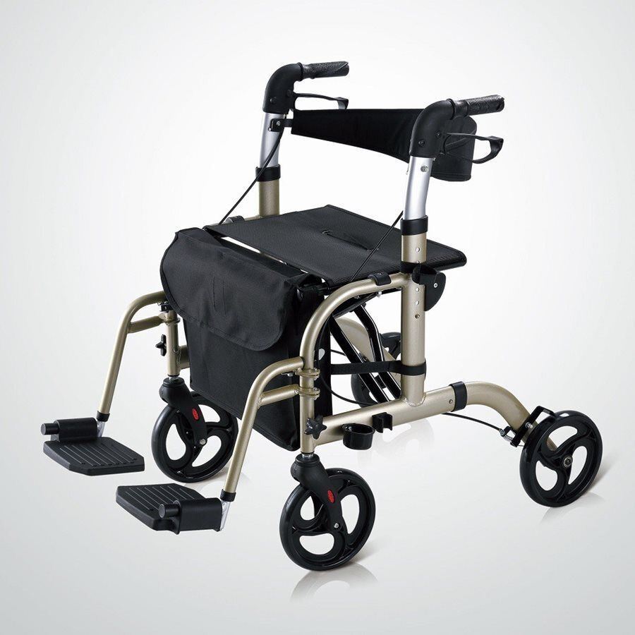 רולטור 4 גלגלים 2 מכשירים במוצר אחד, בקלות ניתן להפוך אותו לכסא הובלה, מושב נוח עם משענת, ידיות מתכווננות לגובה רצוי בקלות, מעצורים להאטה ועצירה.